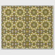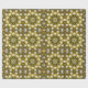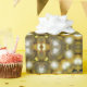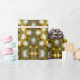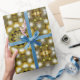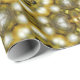 A golden Christmas wrapping paper with a kaleidoscope pattern of glittering gold and silver Christmas baubles forming a very decorative, elegant wrap.