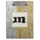 Gold silver grunge glitter pint splash digitised digital Monogram Initial Clip Board Personalised