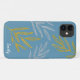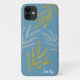 Features hand-drawn botanical leaves in gold and silver simulated foil, on a turquoise background. Personalise with a name.