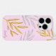 Features hand-drawn botanical leaves in gold and silver simulated foil, on a pink background. Personalise with a name.