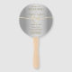 Simple, elegant, metallic gold and silver wedding program hand fan with rope heart and modern script.