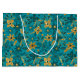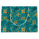 Gold and Teal Blue Christmas Poinsettia Flowers Large Gift Bag