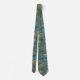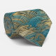 Elegant tie with a Japanese chiyogami-style pattern of gold and teal waves.