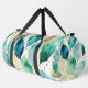 Gold and Teal Watercolor Leaf Pattern Duffle Bag