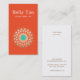 Exotic and elegant with a contemporary touch. Beautiful faux gold foil aqua blue centred mandala inspired sun logo on orange background. This is a digital image of gold foil effect - it is not the real thing.