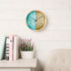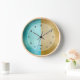 Gold and turquoise shimmering iridescent texture clock