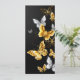 Gold, jewellery and white butterflies on black background. Golden butterfly.