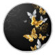 Gold, jewellery and white butterflies on black background. Golden butterfly.