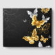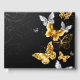 Gold, jewellery and white butterflies on black background. Golden butterfly.