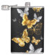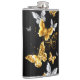 Gold, jewellery and white butterflies on black background. Golden butterfly.
