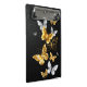 Gold, jewellery and white butterflies on black background. Golden butterfly.