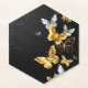 Gold, jewellery and white butterflies on black background. Golden butterfly.