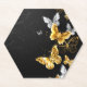 Gold, jewellery and white butterflies on black background. Golden butterfly.