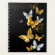 Gold, jewellery and white butterflies on black background. Golden butterfly.