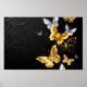 Gold, jewellery and white butterflies on black background. Golden butterfly.