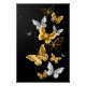 Gold, jewellery and white butterflies on black background. Golden butterfly.