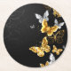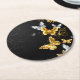 Gold and white butterflies round paper coaster