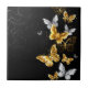 Gold, jewellery and white butterflies on black background. Golden butterfly.