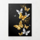 Gold, jewellery and white butterflies on black background. Golden butterfly.