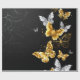 Gold, jewellery and white butterflies on black background. Golden butterfly.