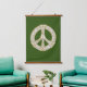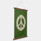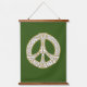 Stylish wall tapestry features gold and white intricate Celtic peace symbol on green background.