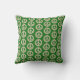 Fun throw pillow for all ages features gold and white intricate Celtic peace symbol pattern on green background