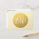 Classy and fashionable 3 letter script monogram using white text, with a background of a foil-effect chevron zigzag pattern print in gold and white, and a gold circle seal with your custom printed initials. Pretty and elegant for women, ladies and for her personal style.