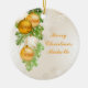 This round Christmas ornament with gold writing and white and gold decorative design is very pretty. If I had been more experienced in designing, I'd have picked a darker color print to personalize it instead of matching the print already on the ornament. As it stands now...it's quite pretty, but I believe the words would be better seen if darker. As already reported, I think it would look better if I had used a darker color on the personalized print.