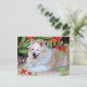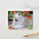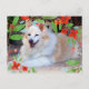 This postcard features one of the photographs of my white and gold Border Collie mix dog. I added an overlay of watercolor red flowers as a border. Anyone who loves dogs will like getting this postcard.
