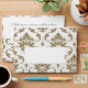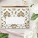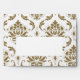 Gold and White Damask Pattern Printed A7 Envelope Template. Gold White Damask graphic design pattern makes this an elegant envelope for your special occasion. Envelope has a blank section on the front for your mailing address. Fully customisable. Personalise with your text, graphics, monogram and or photograph on the front, back and inside and outside flap of the envelope. Great for special occasions like weddings, birth announcements, graduations and everyday elegance in personal handwritten letters.