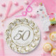 Celebrate the happy couple with this stunning gold and white 50th anniversary paper plate, text and font are easily customisable when you order. Transfer the design to other party products or change type to a birthday celebration or contact me and I will create them for you.