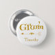 Appealing in appearance, this button is design especially for the Groom. Illustrated on the design is a "Groom" calligraphic graphic in gold. There is an arrow with hearts and his name written underneath. A wonderful button for your wedding related events.