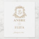 Gold and White Royal Monogram Crest Wedding Wine Label