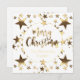 Faux Gold and White Christmas Card, Faux Gold Script Stars Starry Night White Background Modern Chic Merry Christmas Elegant Christmas Card