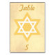 An excellent table seating card that is simply amazing, this design features a golden background displaying your table number gold font. A gold and white Star of David is in the centre of the table card. Same design on front and black. Purchase yours today!