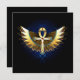 Golden Egyptian ankh with patterned, shiny wings on a black background. Magic symbol.