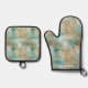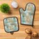 Gold Aqua Tropical Leaves Oven Mitt & Pot Holder Set