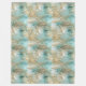 Gold Aqua White Tropical Leaves Fleece Blanket