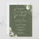 Gold Arch Floral Olive Green Wedding Evening Party Invitation