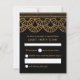 This black and gold art deco reply card keeps the suite's dark, romantic look with white boxes for guests to write their information in. Faux gold glitter scallops sweep across the top of the card and feature a matching backer of the same pattern to tie the whole suite together.