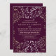 Baby's breath rehearsal dinner invitation with gold foil effect and plum background