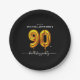 Gold Balloon Black 90th Birthday Party Paper Plate