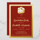Make your graduate’s day extra special with this unique and modern red and gold foil graduate party invitation. With its luxurious golden hues and elegant design, it is sure to be a hit with friends and family. The design features a red and gold theme with golden balloons on the front and a large, gold graduate's cap (or mortarboard) on the back. Get ready to kick off a graduation celebration like no other!