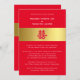 Specially designed for a Chinese wedding, this card features the “Double Happiness” symbol. The "Double Happiness" spelled xi or "hsi" in Mandarin and pronounced "shuang-xi" is a well-known Chinese character used traditionally in Chinese weddings as a symbol of love, happiness, and luck for the newly wedded couple. The use of the color red is an auspicious, as well as a popular color in Chinese culture, symbolizes luck, happiness, and joy. Whilst the gold-colored band symbolizes wealth and prosperity. The back of the card also features a gold band including the initials of the wedded couple.
