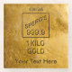 An stamped, one kilogram bar of 999.9 percent pure gold. Text reading, "SPERO'S 999.9" and "1 KILO GOLD" also appear, along with a serial number. Customise by adding your own additional text.