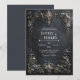 Invite your guests to a celebration of opulent luxury and dramatic elegance with this exquisite wedding invitation. The design features a stunning, rich dark navy and charcoal distressed background, giving it a luxurious, antique texture with subtle gold and gray veins. A prominent ornate gold baroque rectangular frame dominates the scene, heavily detailed with intricate scrolling foliage and blue floral accents. The top and bottom centers are anchored by large sculpted medallions featuring stunning faceted blue gemstones. This entire frame is lavishly draped with delicate blue forget-me-not style flowers and dark gold foliage. This aesthetic conveys a deep, sophisticated richness, perfectly setting the stage for a dramatic, high-end, or formal evening wedding. This invitation card is ideally suited for a masquerade ball wedding reception, a formal historic venue ceremony, or a sophisticated gala anniversary celebration. It would also perfectly suit a regal winter holiday engagement party or an elegant black tie New Year's Eve event. The card's captivating blend of ornate gold accents and deep-toned florals ensures it is versatile for any solemn ceremony, corporate gala, or refined birthday announcement.