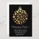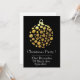 A party invitation for a Christmas party featuring a golden bauble ornament original watercolor art painting on black background glam design. The text and background colour on this invitation is fully customisable to include your own personal details.