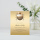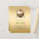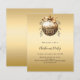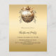 An invitation for a Christmas Party. A faux gold looking background. Decorated with a large golde vintage looking bauble. Personalise and add the details. Black text.