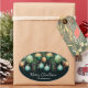 Elegant Christmas holiday oval stickers feature pine branches, green and gold Christmas ball ornaments and ribbons on a deep green background with your details in chic lettering, perfect for your festive holiday gathering favours or for your gift-giving. MATCHING items in our collection.