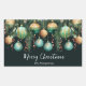 Elegant Christmas holiday rectangular stickers feature pine branches, green and gold Christmas ball ornaments and ribbons on a deep green background with your details in chic lettering, perfect for your festive holiday gathering favours or for your gift-giving. MATCHING items in our collection.